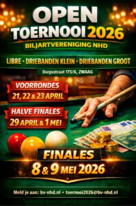 Vanavond gaan we van start met het Open toernooi 2026 bij Biljartvereniging N.H.D.